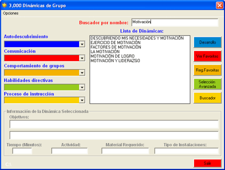 2. En la "lista de ejercicios", aparecerán las actividades que cumplan con el requisito de búsqueda que usted selecciono. |
